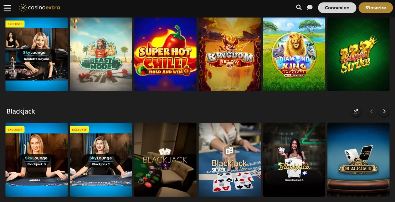 Le service live du casino Extra est l’un des meilleurs que vous trouverez sur le marché. Les croupiers sont élégants et professionnels, ceci donne une plus-value à cette section. La qualité du streaming est exceptionnelle, et l’ambiance est digne des établissements de Las Vegas. Tous les jeux de table classiques y sont représentés.